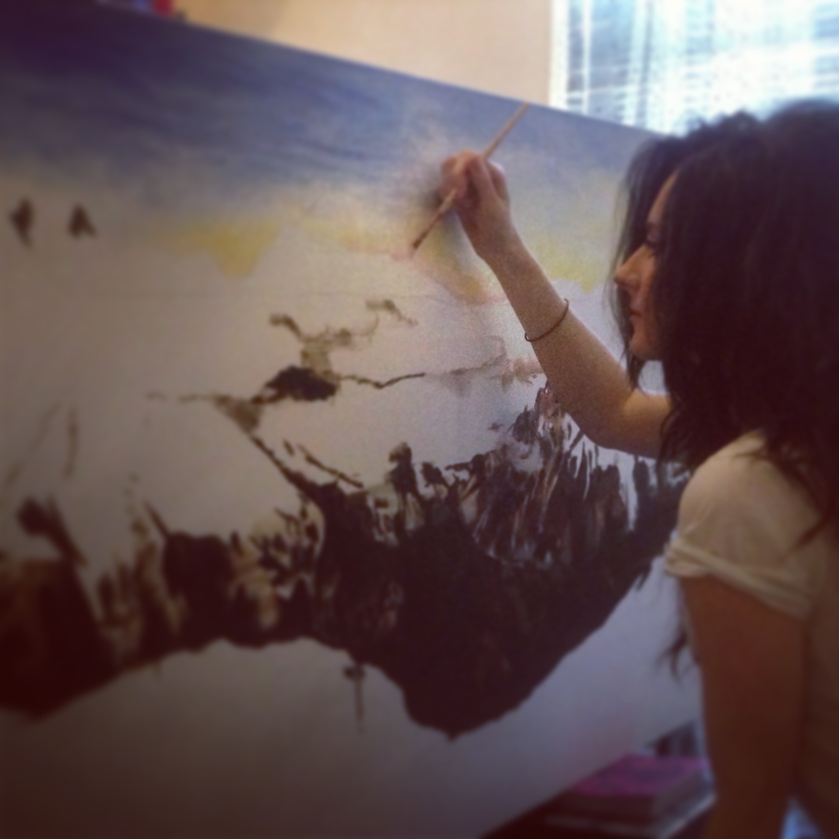 I have been commissioned to paint a landscape piece, based on a photo taken by the commissioner himself. It began as a mixed media piece however took an oil paint turn when the effects seemed to better suit the atmosphere of the image I was working from. The canvas itself is beautifully made and so lovely to work from!