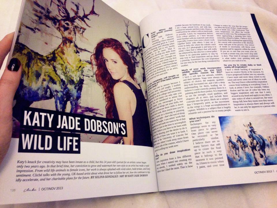 I am so excited that as my first year as a professional artist, I managed to end it on a high of featuring in two magazines, one being overseas in America and the other a cover feature. Last October with my life at somewhat of a fork in the road I had got away from a situation and sat in a cafe with a pot of tea and a magazine. I saw women being celebrated for their fantastic work in so many different genres of art, fashion, politics, and business. What I noticed about these articles were that each of these women had faced a fork in the road, hit rock bottom or had been forced to consider a huge change in their life before they decided to make the change themselves. Although I was dead centre of a difficult situation, I felt so far away from it with the realisation that I was free to do what I enjoyed more than anything and this is what I did from the back of the inspiration I found that day in a magazine.