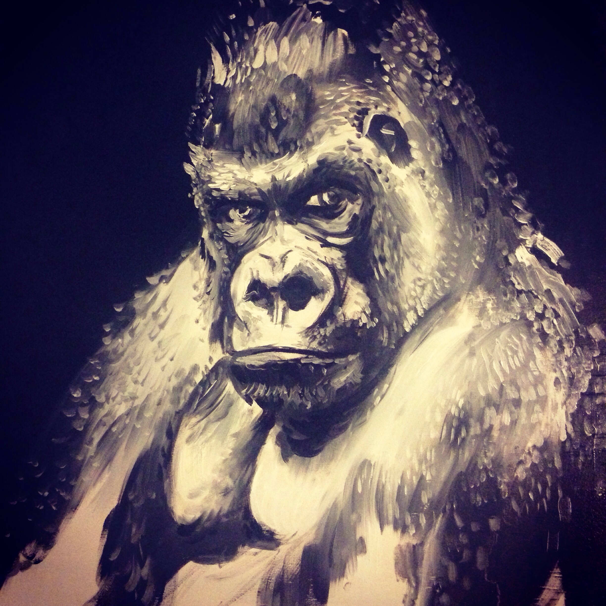 This could be down to their powerful attitudes that’s are so easily readable and relatable in their facial expressions. To be able to capture a certain power behind this animal is an aim of mine after falling in love with their natures. As my style evolves I find myself going back to gorillas as a subject and trying again to capture the same features, in a different way.