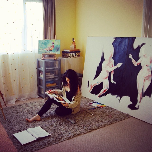 Composition and arrangement within my paintings has been something of an ongoing thought recently, following a painting that just did not sit quite right with me. I love to mix intricate detailing with large brush strokes, texture and expanses of blended calm. But how can you know how well this works if you don’t think to look from a distance? I work so hard on my paintings that I am pressed to close against them constantly, correcting areas and forever looking closer. It did not, however, occur to me until I was finally given the space to step back that this is this is the real way to look at work. The way everyone else will see it.