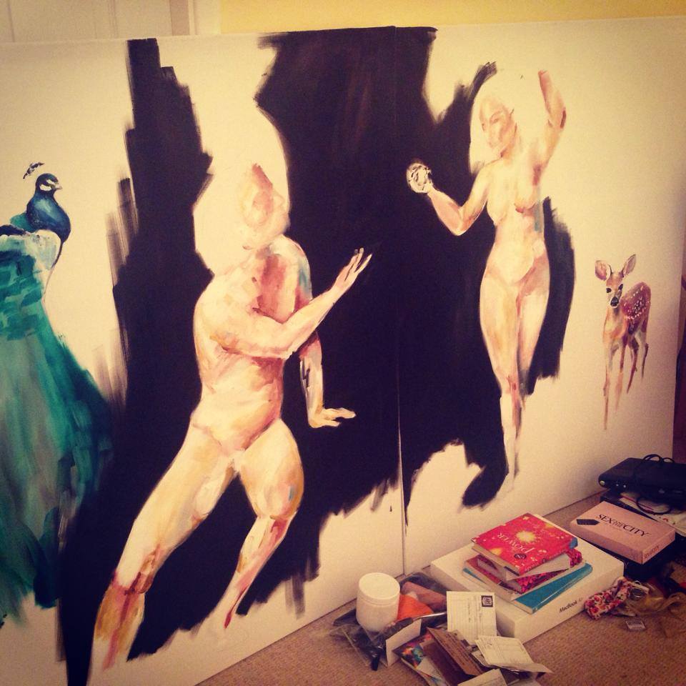 The piece is made of two canvases, both 40×50″ inches, each holding the figure of Adam and Eve individually.