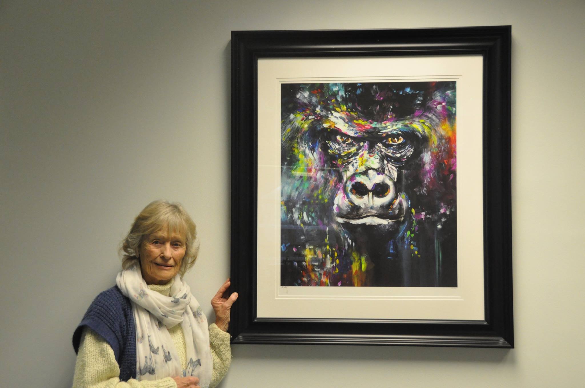 A Limited Edition print of ‘Chimaruka’ (the original painting of a gorilla named after one of the gorillas that can be adopted through the Born Free Foundation) was sent to the Born Free offices and I kindly received an image of Virginia McKenna with their artwork.