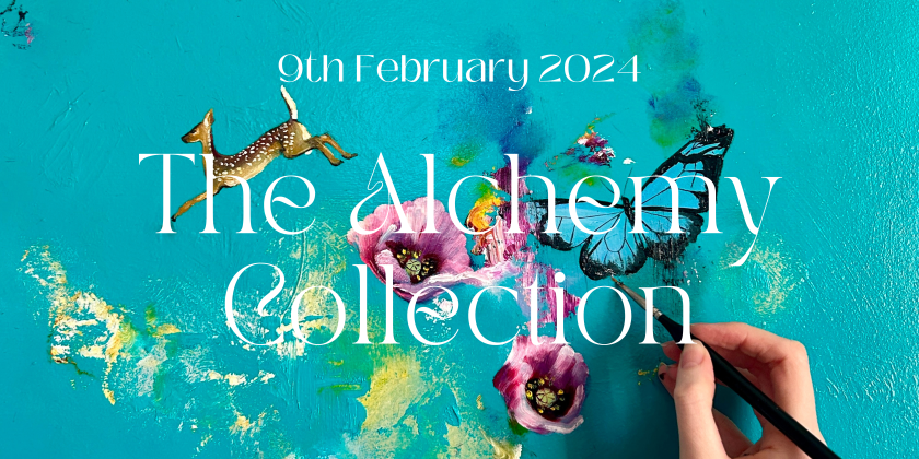 A blog post!? How very 2011. If you’re a long time follower, you will have clicked through to this blog page before! For years this was my favourite place to be to talk about my own artwork and my journey as an artist, and all the other artists and things that I love. But where did blogs go? I decided to blow the dust off of this page and lovingly bring is back to life. What better way to start off my jottings than with a new collection. This new work is a very loved body of work, put together with ideas from the past and the plans for the future. I have mixed different timelines together for this one, and I feel that the overall look of it looks both a little different, but also very much like my work all at the same time! The Alchemy Collection ‘This collection came together like streams towards an estuary, in a meeting of multiple timelines. From my classic animal portraiture with a display of prismatic colours, …