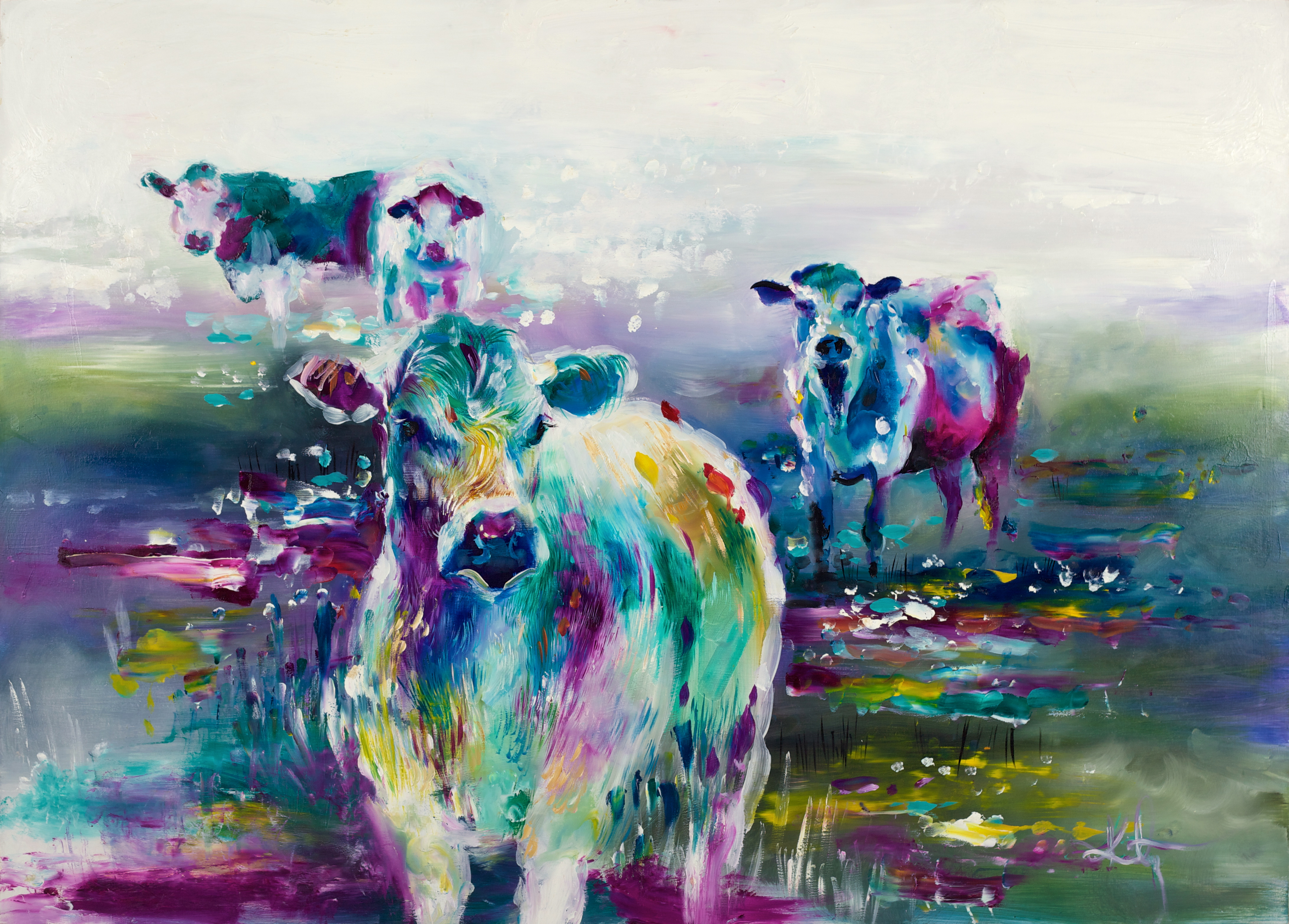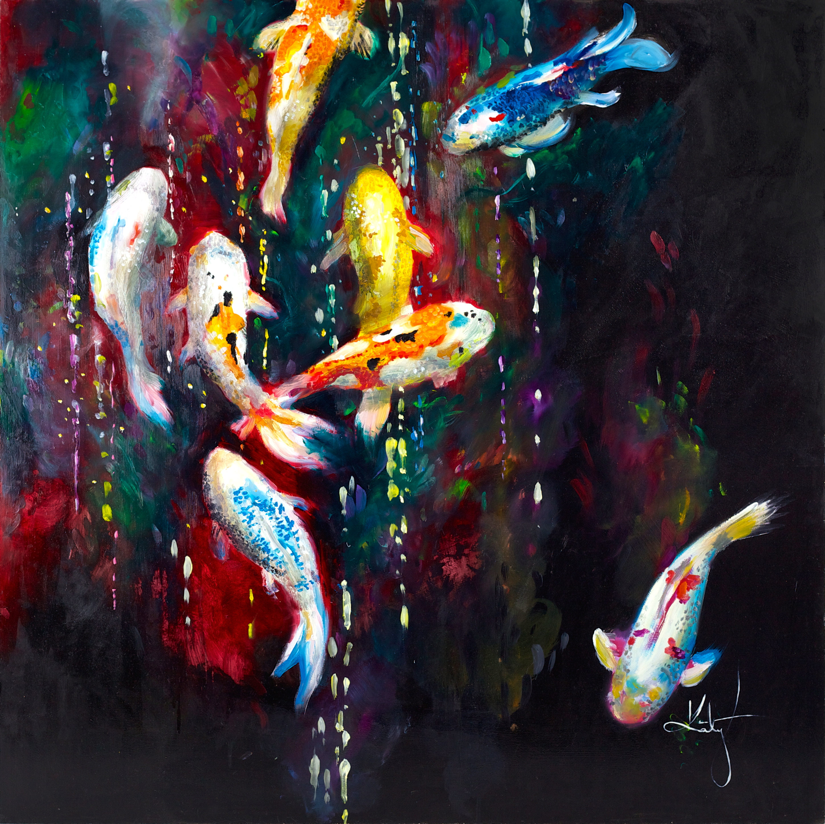 The second collection for Wishbone Publishing by Katy Jade Dobson boasts a deluge of rich, vivacious colours and opulent textures in a joining of traditional oil painting with a modern presence. This coupling of classic inspirations and techniques, with contemporary deliverance shows a bold omnipresence throughout Katy’s work.