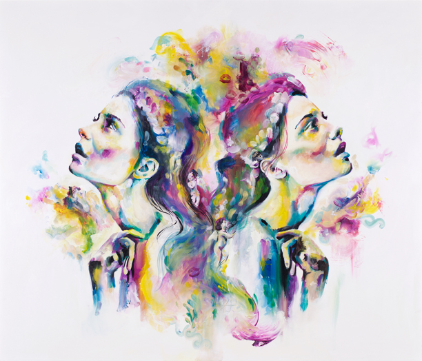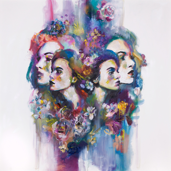 A modern take on the angelic inspiration of the old masters. Heads facing upward in relation to the sky/heavens, adorned with cherubs. Interweaving classic renaissance ideals with contemporary colours and styles.