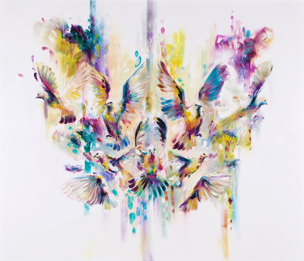 ‘A fresh and lively piece, showing the erratic flight path of a set of released doves, controlled and refined by symmetry. Peaceful in subject and composition, but the nature of unguided wildlife in action supersedes this, which is evident in the capricious movements.